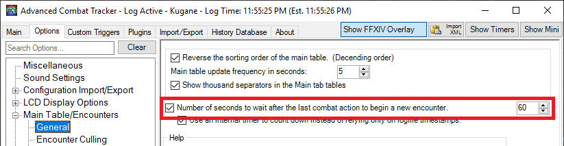 First, go to Options > Main Table/Encounters: General and increase encounter duration to 60 seconds or higher: