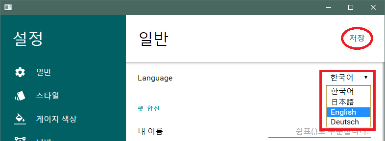 In case Kagerou starts in a foreign language, click the ⋮ > gear to open the settings, then select a familiar language from the dropdown and click save.