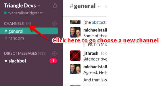 You don't have to just stay in the #railsbridge channel either! The whole Triangle Devs Slack community is open to you. Go to the #general channel if just want to interract with our local development community. There are lots of people willing to help out, just let them know what your experience level is and I'm sure you can get your question addressed.