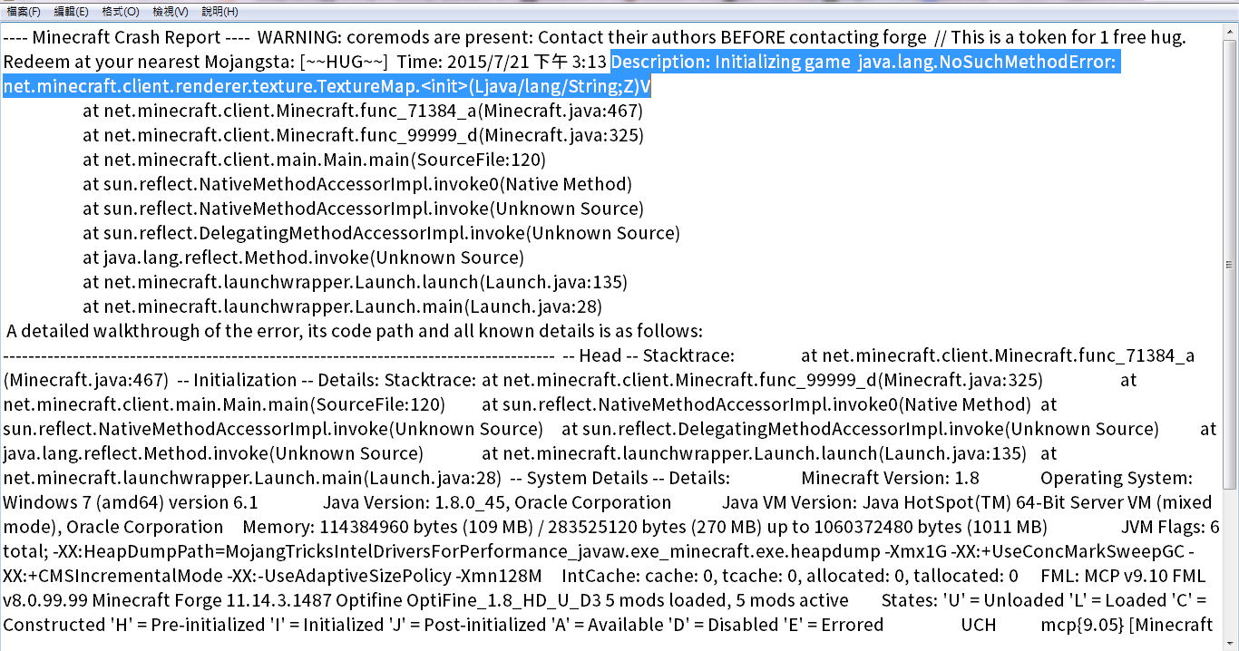 新增參數(forge裝中文模組 or 改善Minecraft):將參數貼到JVM Argument即可