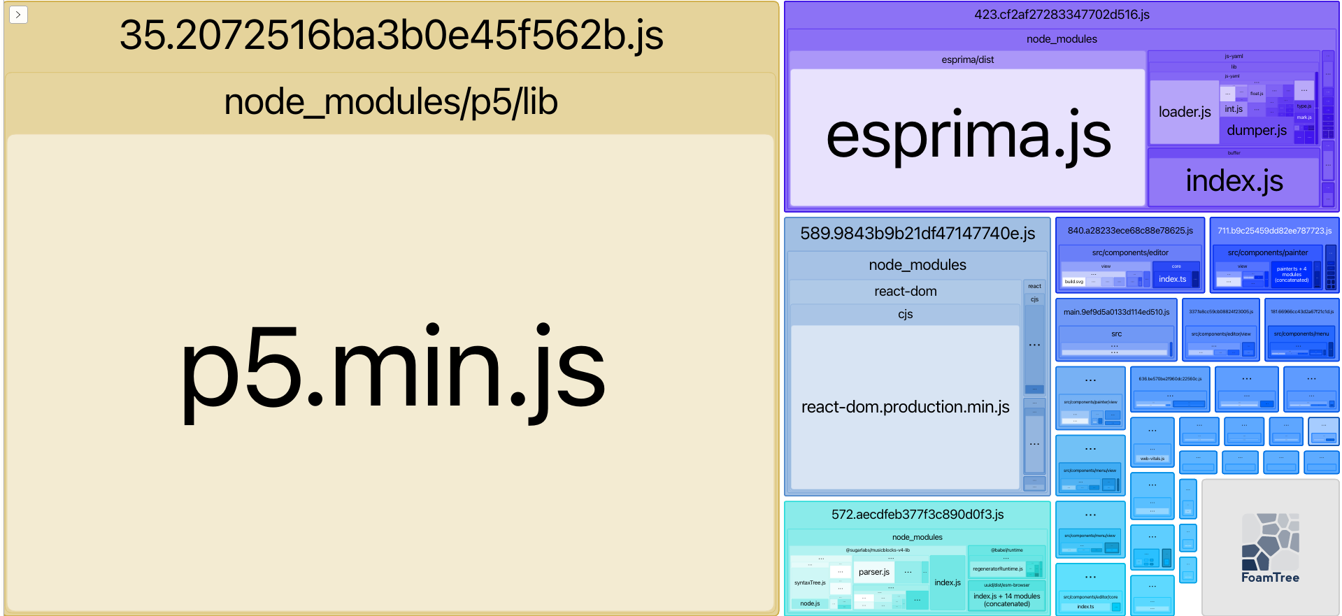 Then, I analyzed the current build output with webpack-bundle-analyzer.