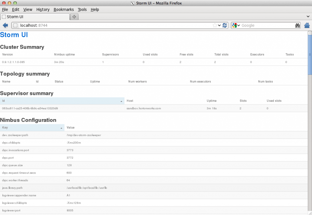 - Check the nimbus host configuration: ensure nimbus.host is set to sandbox.hortonworks.com