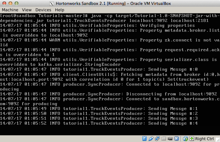 The TruckEvents producer can now be executed as we did in Tutorial #1 from the same dir: