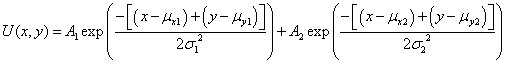 The MATLAB optimization function lsqnonlin is used to fit each candidate SM image identified by the template-matching algorithm by minimizing the mean-square error between an eight-parameter double-Gaussian model of the DH-PSF U(x, y) and the raw SM image. This model is given by