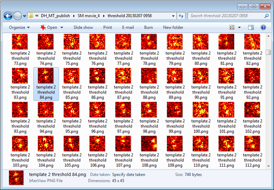 - 2.4: After the template-matching module is complete, open the ’threshold [DateAndTime]’ folder. This contains a selection of .png files that represent potential template matches. The filenames describe which template matched the data and the value of the phase correlation for the match (e.g. ‘template 3 threshold 272.png’).