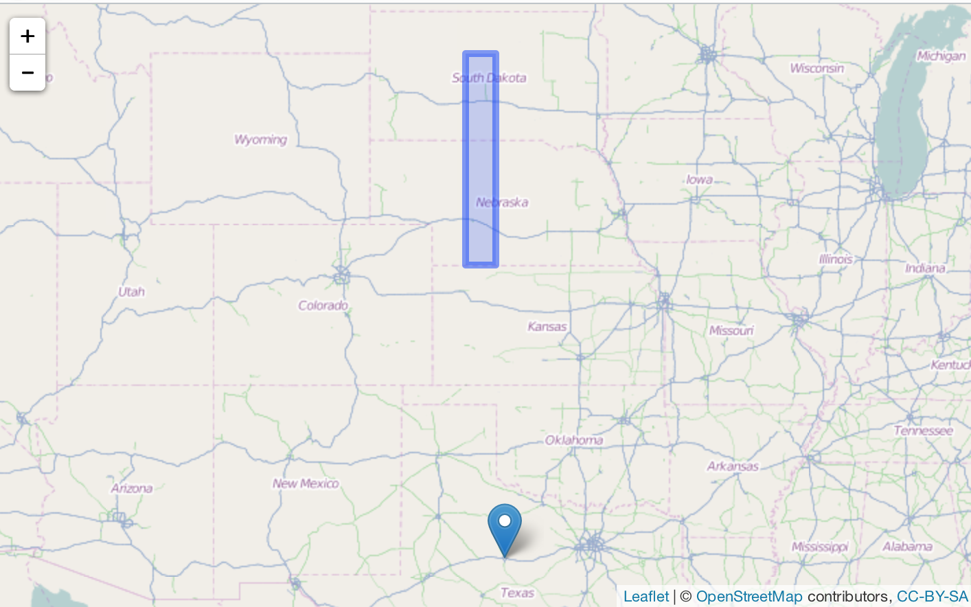 c <- geojson_json(list(c(-99.74,32.45), c(-99.74,36.45)))