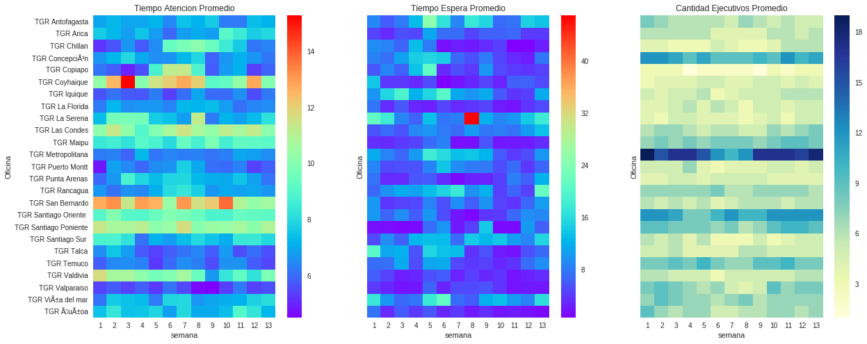gdf=pysqldf('SELECT semana,Oficina,AVG(Tiempo_Ate_Min) AS TiempoAtencion, \