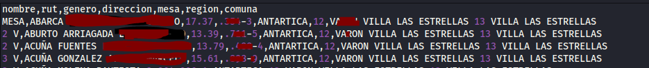 El problema que da es que no está colocando un registro por línea y el rut lo divide en 2 campos, es posible solucionarlo?