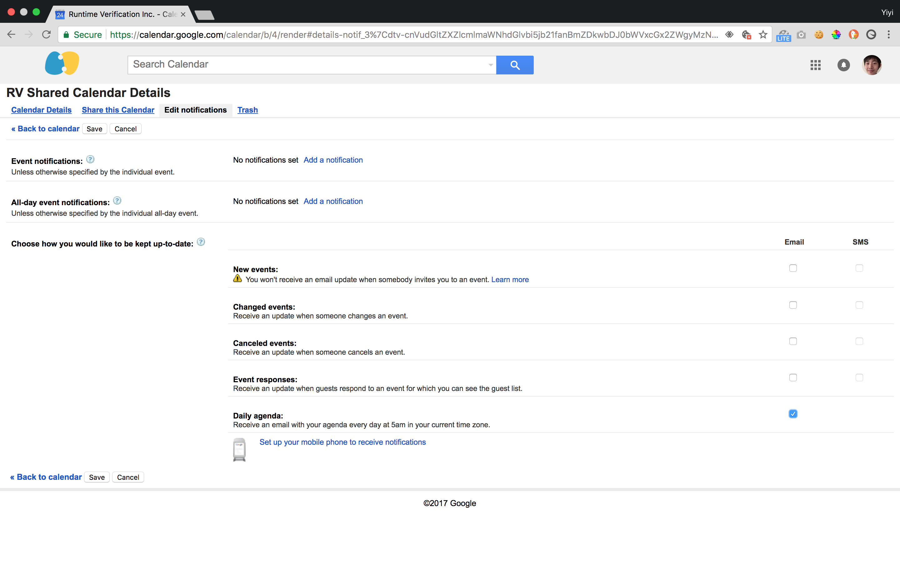 1. Choose Edit notifications section, then you can enable the nofication that you like, like Daily agenda. Click Save to save the changes.