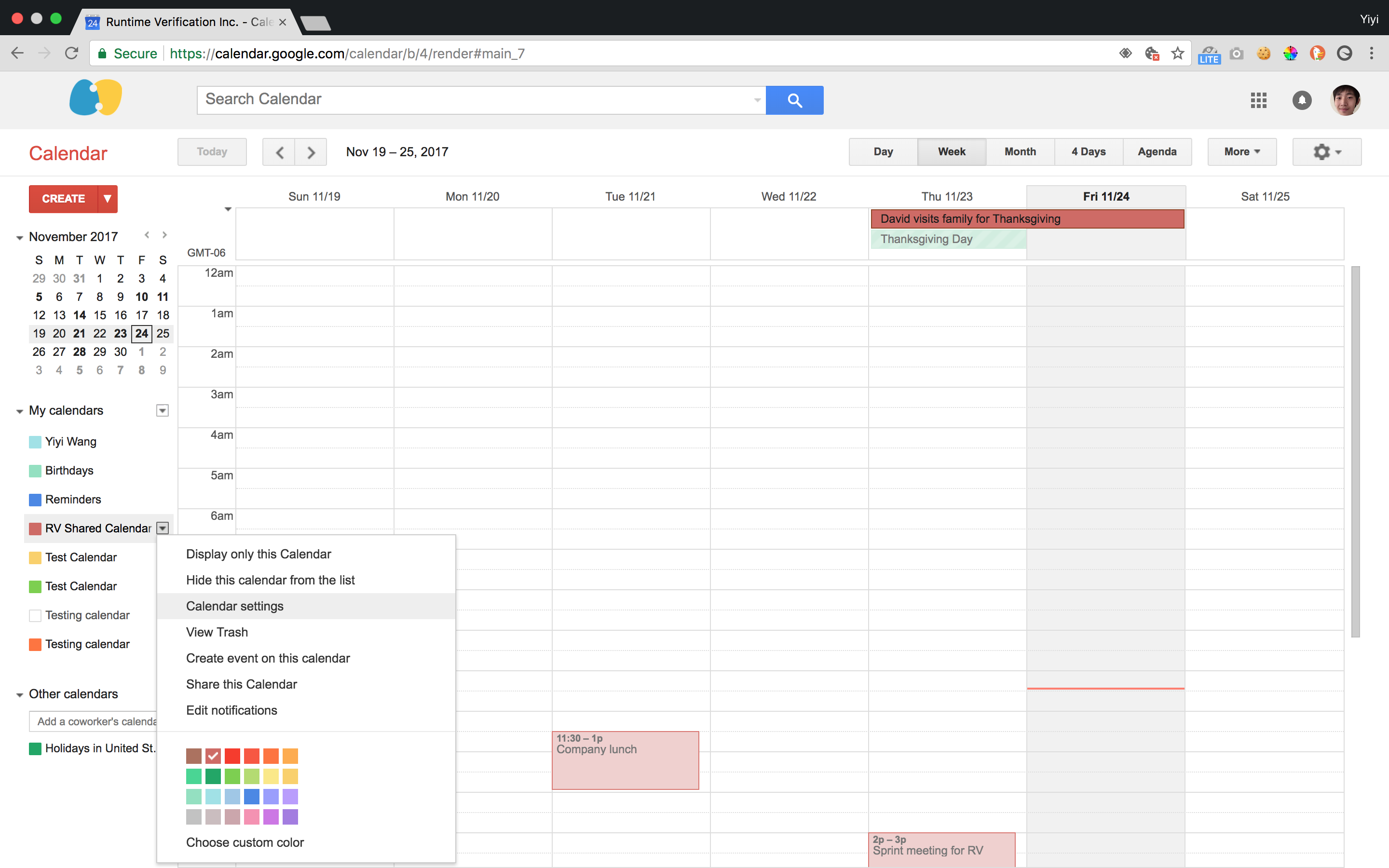 1. Visit: https://calendar.google.com, click the arrow on the right side of RV Shared Calendar then choose Calendar settings.