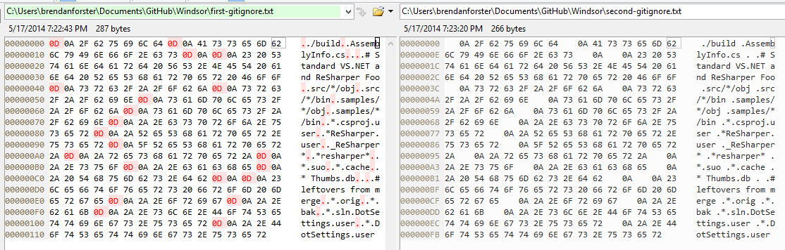 At this point, open your favourite hex editor and compare the two files. What? You don't have a favourite. I'm using BeyondCompare for this.