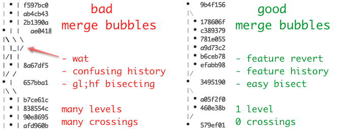 • DON'T merge with conflicts. handle conflicts upon rebasing.