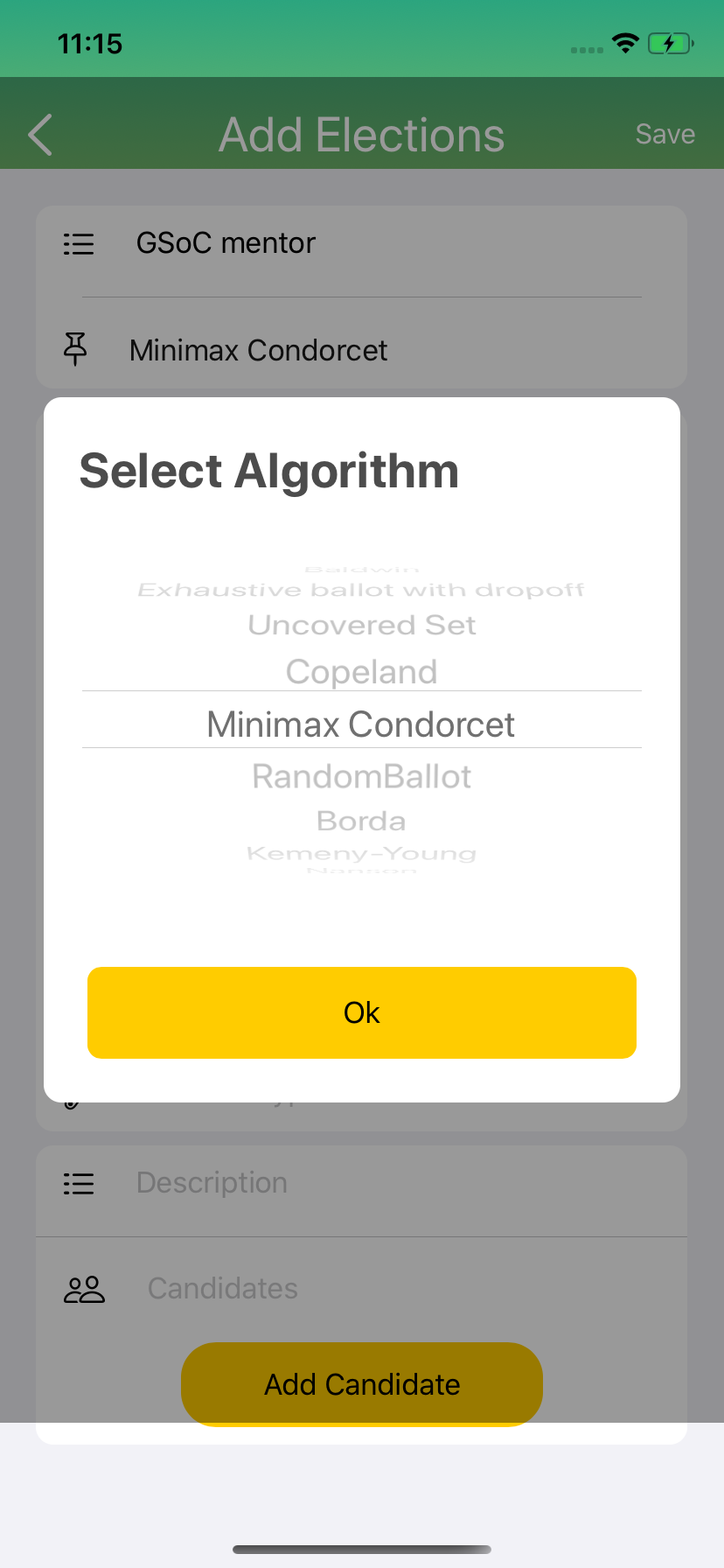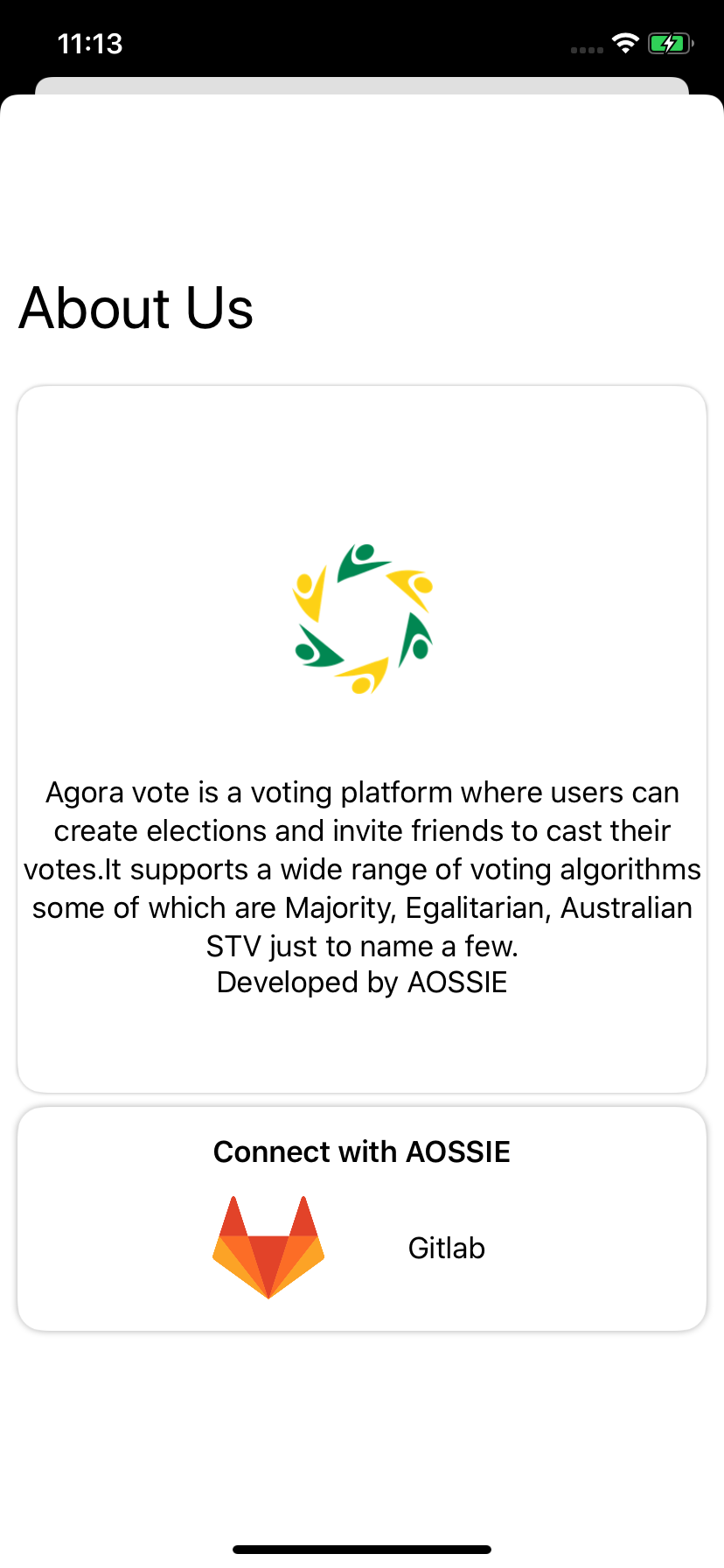 iOS Application for Agora Web that uses Agora: An Electronic Voting Library implemented in Scala. This application uses Agora Web API as backend application. It allows for elections to be held by using multiple algorithms such as, Oklahoma, RangeVoting. The application has been built from scratch.