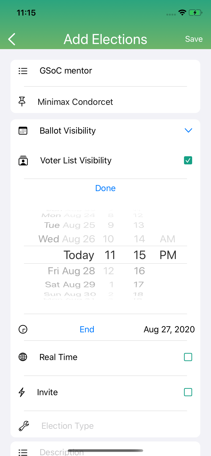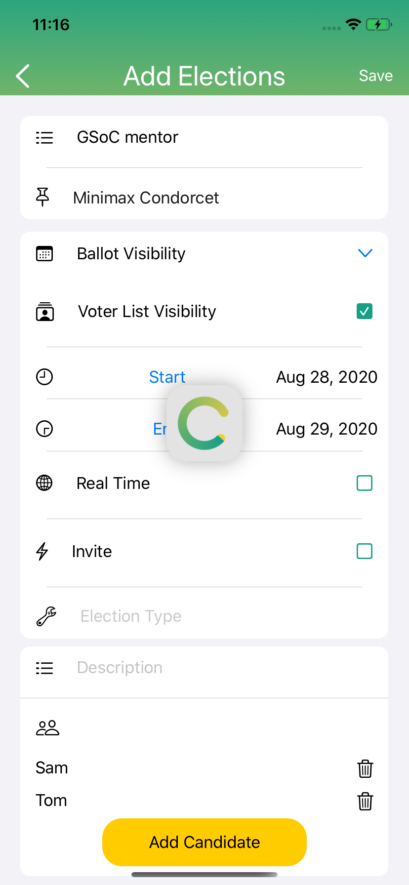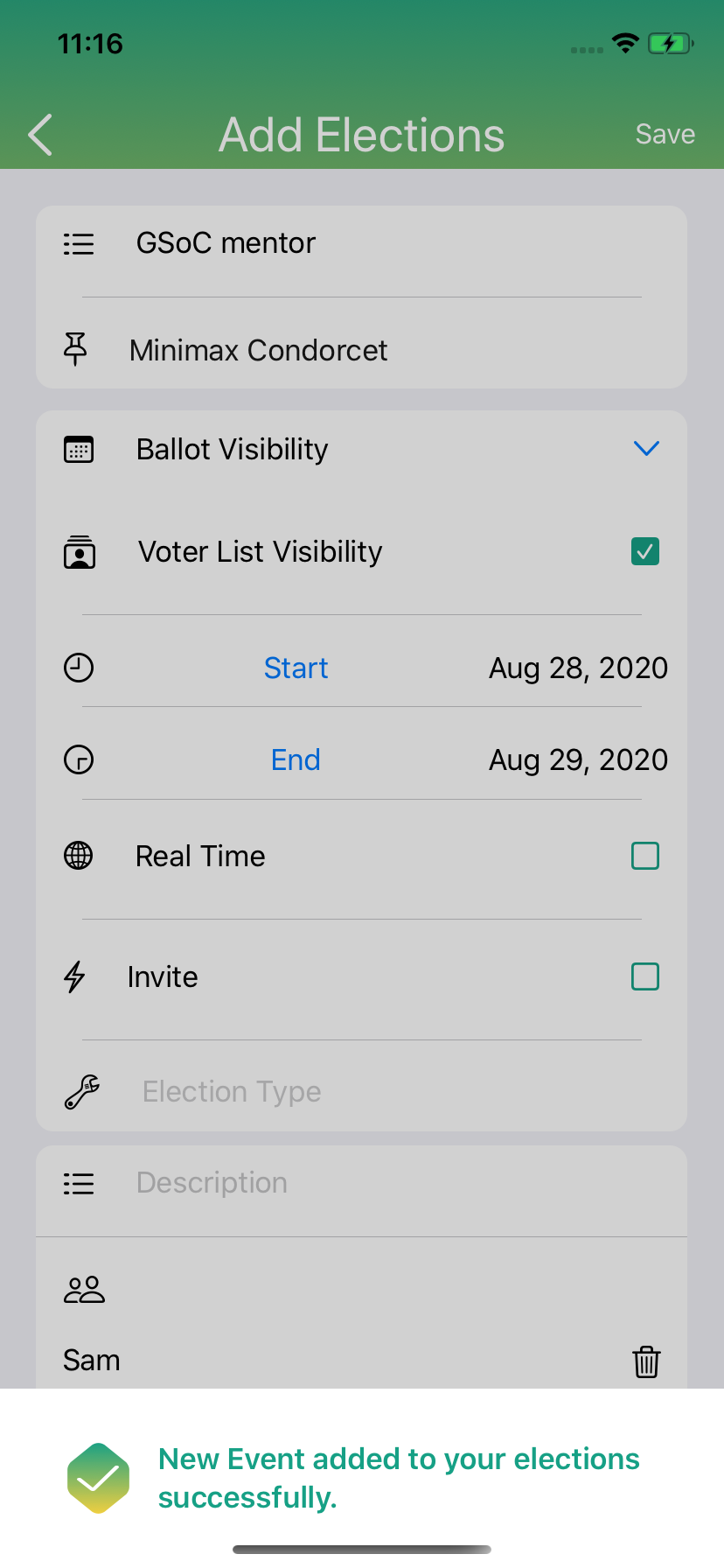 After this, in the 2nd phase, I worked with the most challenging and main highlight of the project the 'Calendar View' for election events. I modified the 'KVKCalendar' according to my needs, there were many challenges here as it was difficult to alter anything in this framework as many of the elements were dependent on each other. But eventually, with time I was able to overcome them. After the calendar view, I built the 'Create Election View', here I added various utility functions; eg for handling dates, animations, badge popups, element transitions, election model, date picker, handled JSON data, improved navigation; and made the navigation minimal and easy to use. Furthermore, I added UI Tests.