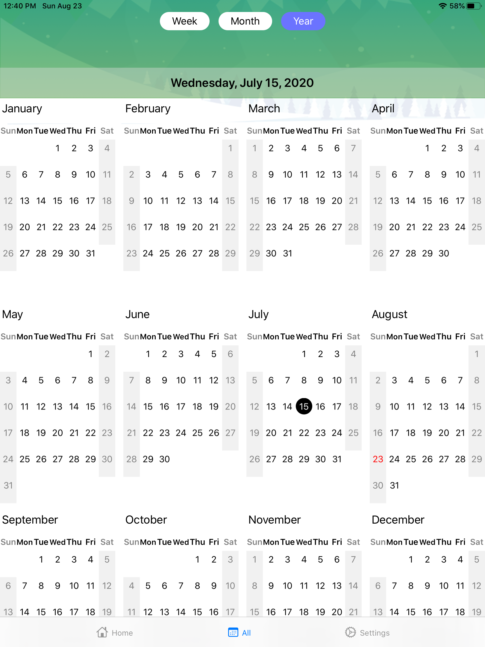 navigationViewStylefor iPad. - Modified calendar view top gradient background to change according to calendar type.