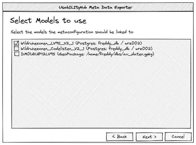 Choose the models (detected by Model Baker in all the source schemas) you want to connect to your metaconfiguration.