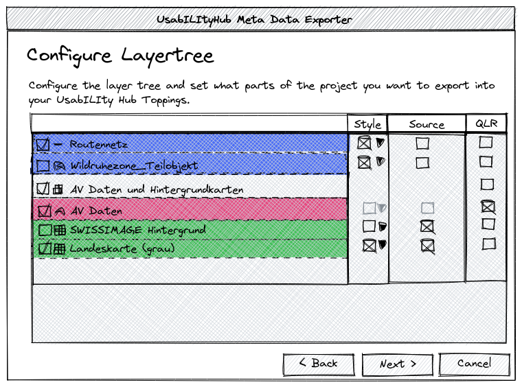 - Choose if the layer should be exported (if no, it's the same like it would not exist in the project)