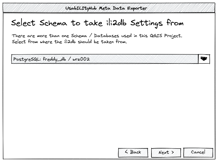 If there is only one schema that the INTERLIS layers are based on, it takes all the settings from there and writes it to the metaconfiguration file. No settings can be made and this page will not appear.