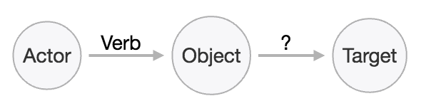 Another common approach is to create a root activity node with actor, object and target as subnodes: