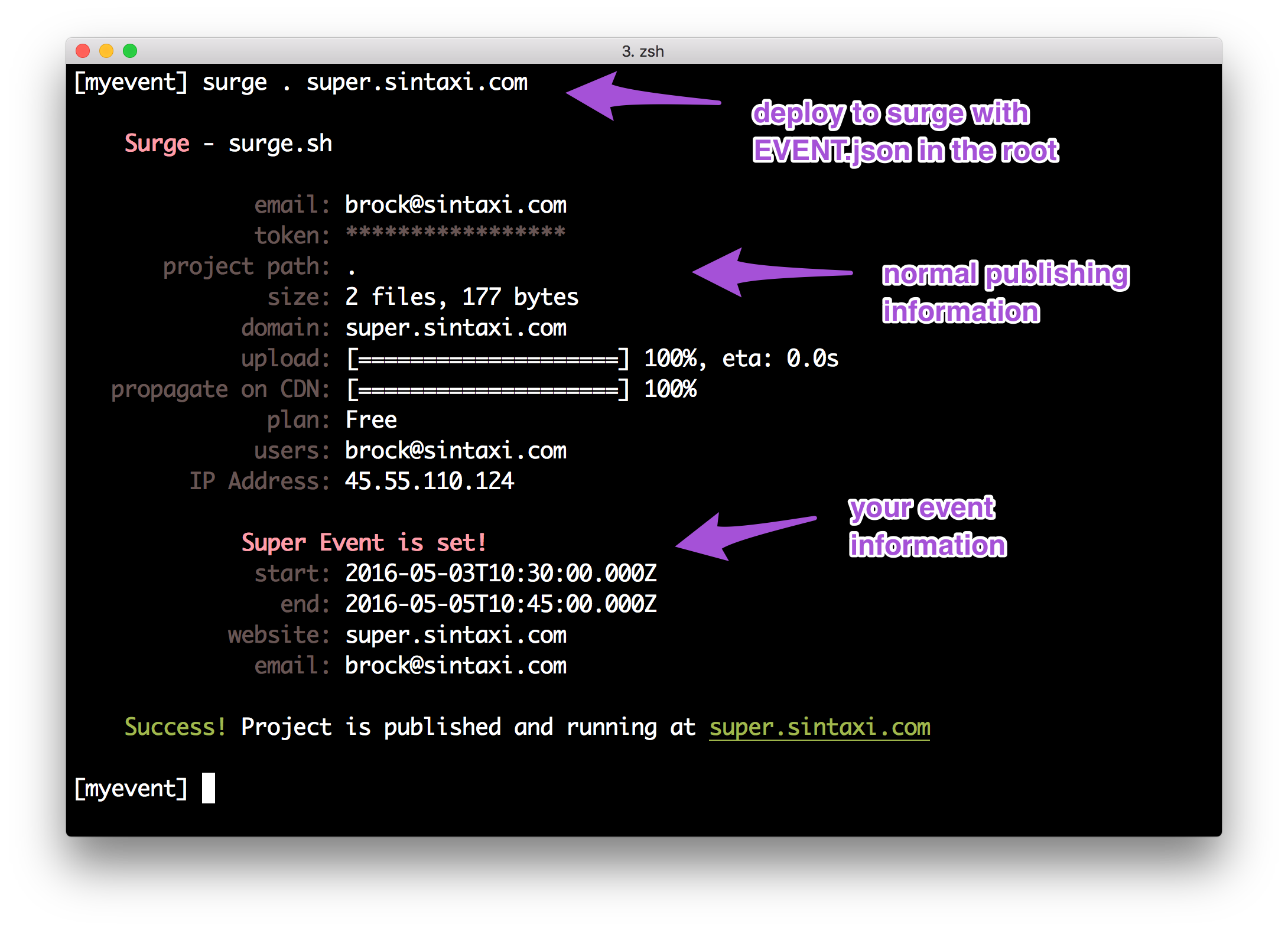 Hosting an event on surge is very simple. It's three easy steps.