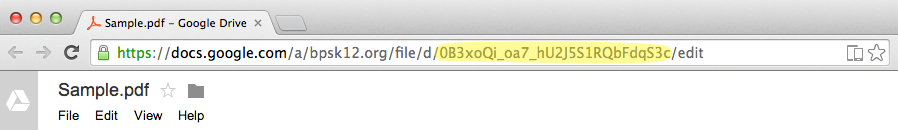 The file ID for your PDF (one that is already in Google Drive) can be found in the PDFs web address. When you open a PDF, it’s the garbage-looking piece of the URL (it will be between forward-slashes, “/”).
