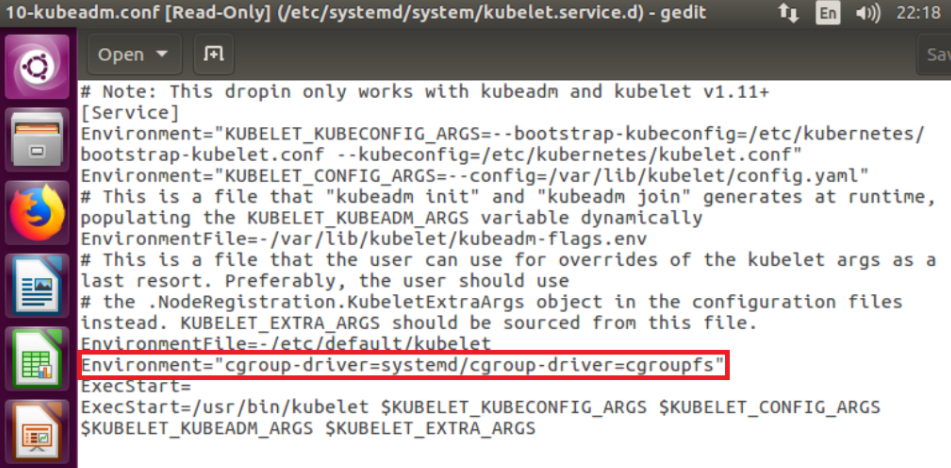 $ gedit /etc/systemd/system/kubelet.service.d/10.kubeadm.conf