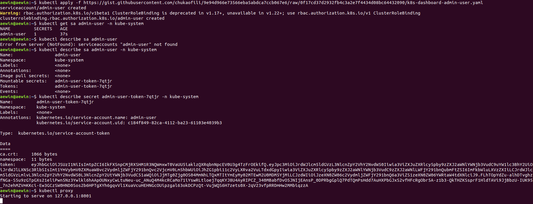 kubectl apply -f https://gist.githubusercontent.com/chukaofili/9e94d966e73566eba5abdca7ccb067e6/raw/0f17cd37d2932fb4c3a2e7f4434d08bc64432090/k8s-dashboard-admin-user.yaml