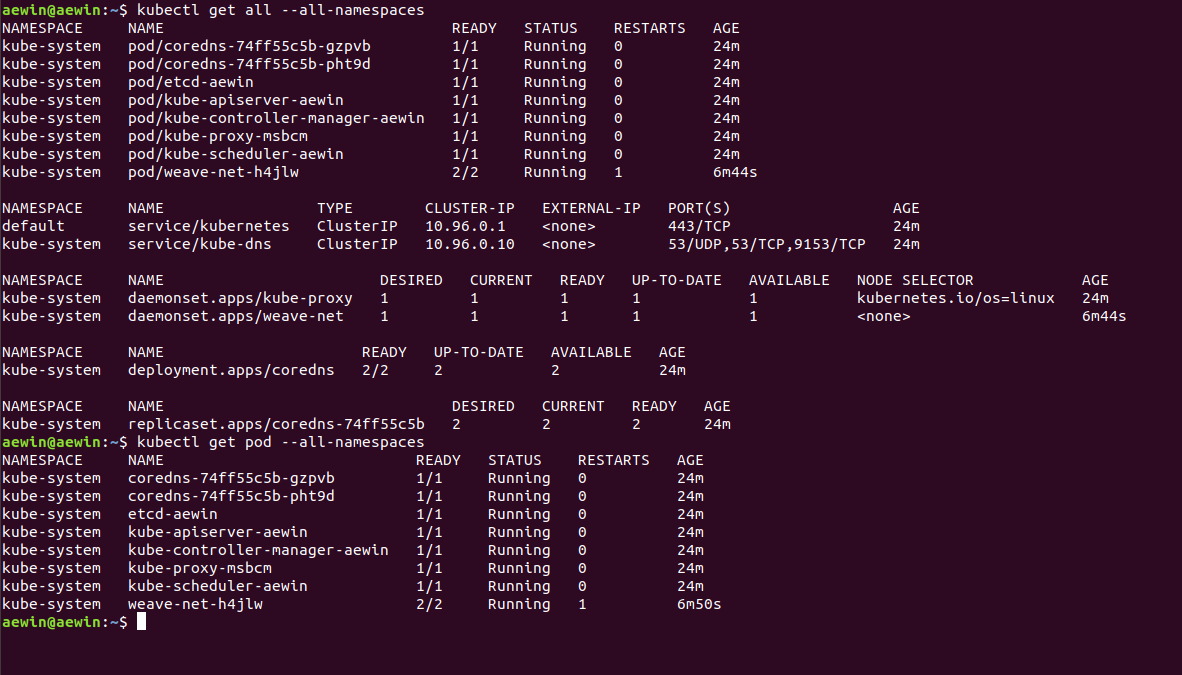 $ kubectl get all --all-namespaces