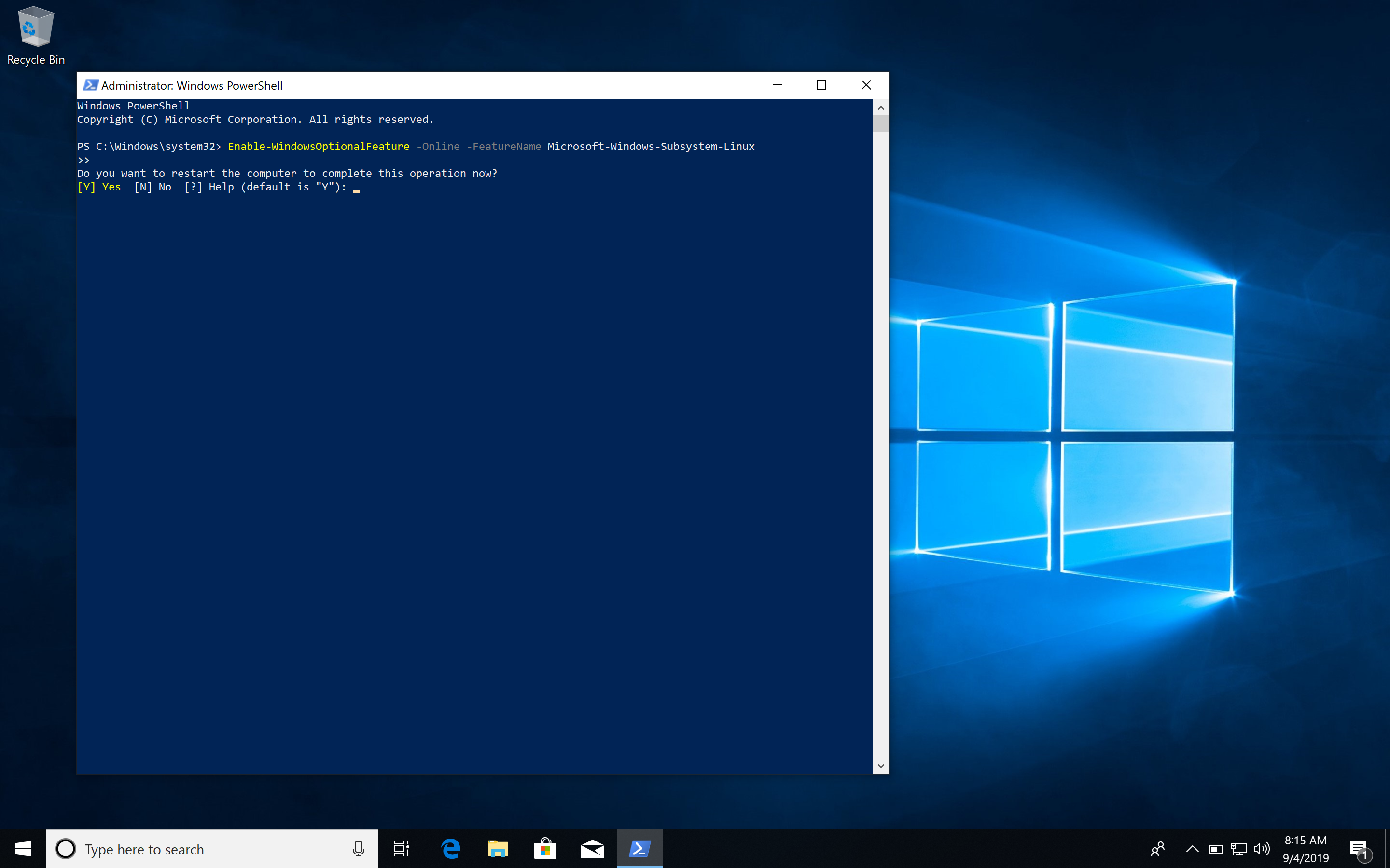 Enable-WindowsOptionalFeature -Online -FeatureName Microsoft-Windows-Subsystem-Linux