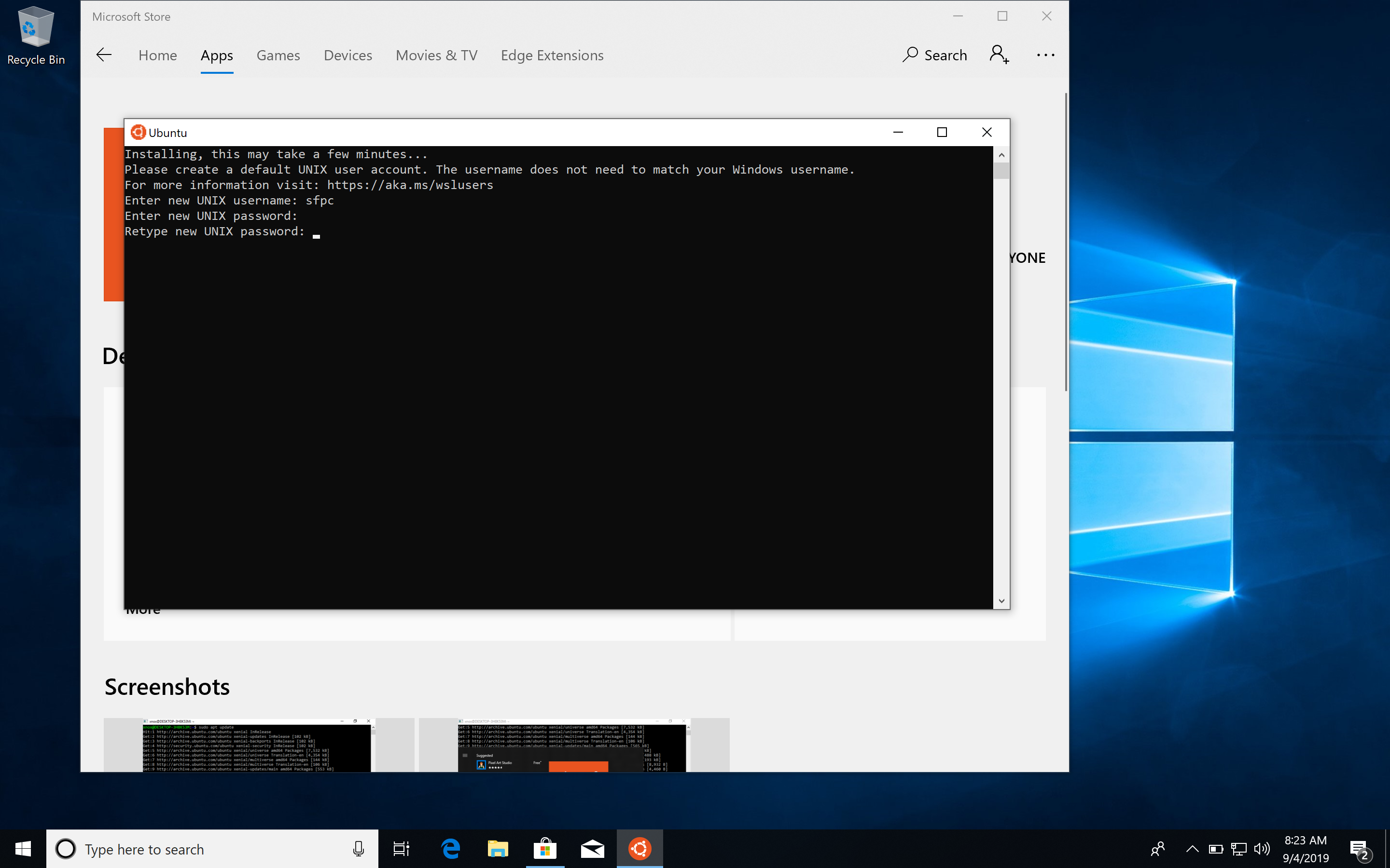 - Choose a new username and password for Ubuntu when prompted. Your username doesn't have to be the same as your Windows username, and it's best to choose one that is all lowercase characters with no spaces. We'll use