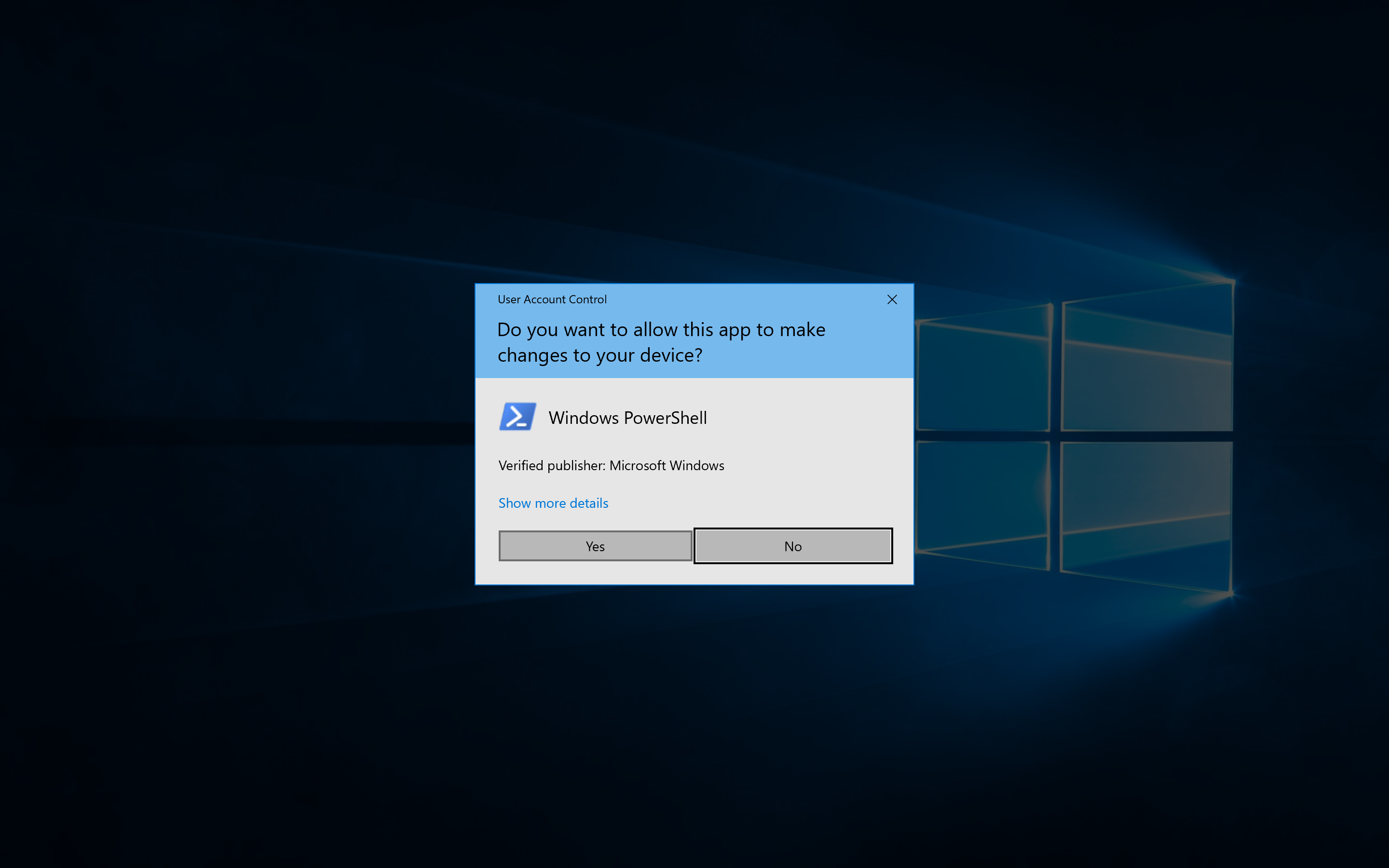 - Copy and paste or type the following command into the PowerShell window and type Y to restart when prompted.