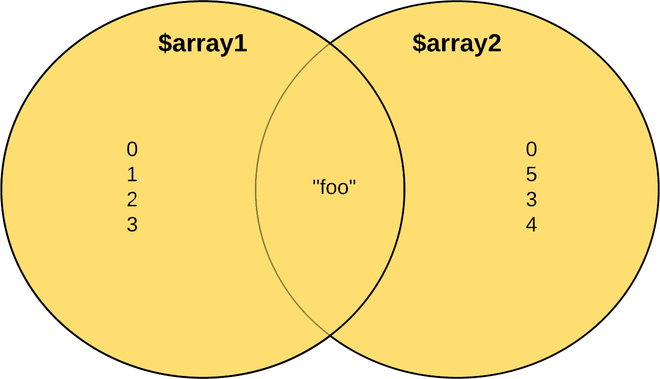 This venn diagram uses the array keys (as opposed to its values) to illustrate the sets, subsets, and intersecting sets of these arrays.
