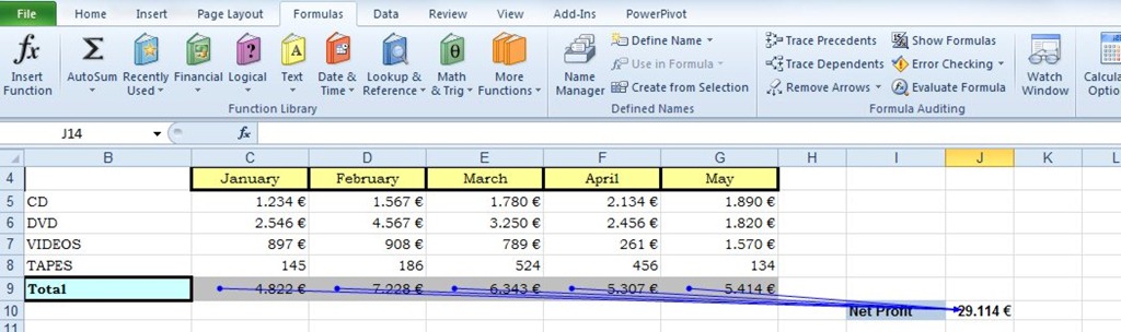 These limitations allow for a global view of a spreadsheet via the "trace precedents" function, which visualizes cell dependencies: