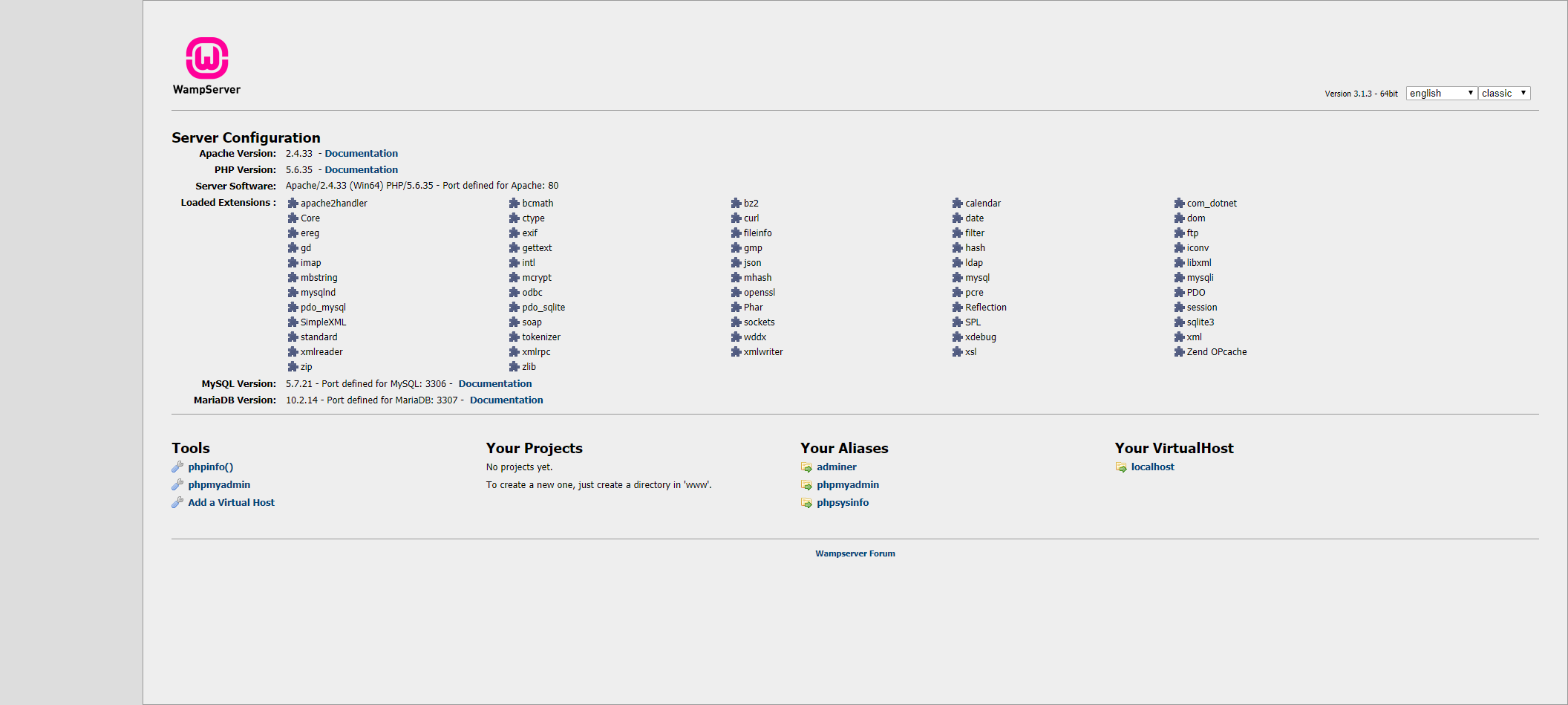 The fastest way to install LAMP stack on your Windows machine is to use WAMP. It comes with a lot of preinstalled modules for Apache and PHP-FPM along with Nginx and MySQL.