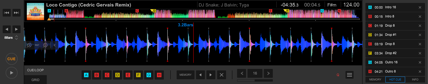 | 1 | Intro 16 | Blue | 16 BARS into the intro / before breakdown or build | Intro #1 (Orange): if song doesn't have enough bars |
