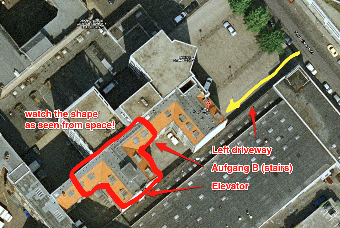 - There also is another elevator inside of the building (just go through the Betahaus cafe, it's on the right side), go to 5th floor and find the door right next to the staircase.
