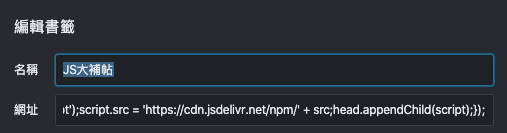 使用方法:新增一個書籤,把底下 javascript: ... 的程式貼到書籤的網址內,然後去你想要用的網頁,點一下書籤就會載入這些 JS 進來,你可以自己修改想要載入的 JS 清單。