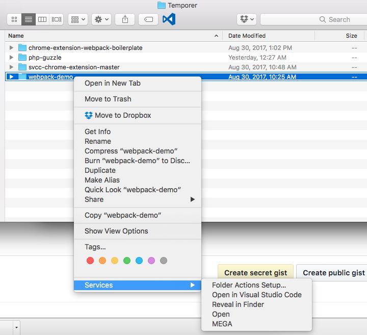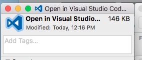 Steps ->di Automator, pilih folder yang ingin dibuka di vscode dan perhatikan script berjalan - Apabila sudah selesai action tersebut akan muncul di dalam sub-menu Service di context menu Finder MacOS