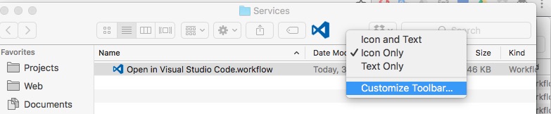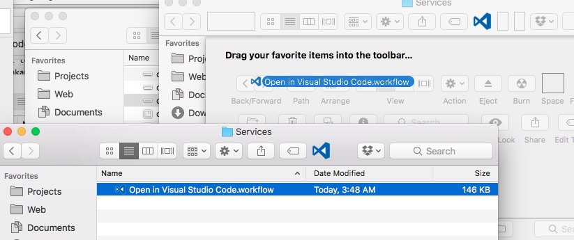 - Script yang sama dapat kita tarik dari dalam finder ke dalam Toolbar Finder untuk menjadi shortcut yang bersifat permanen