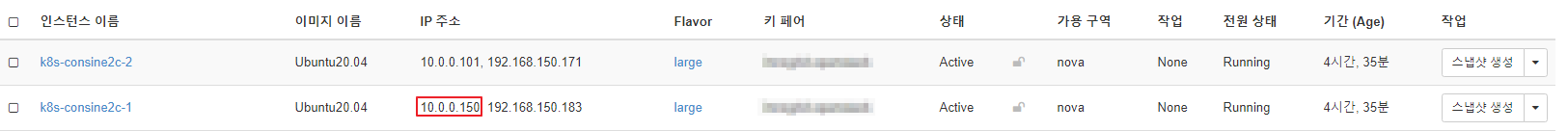 • 아래 addresses 부분을 cluster ip 로 변경하여 진행
