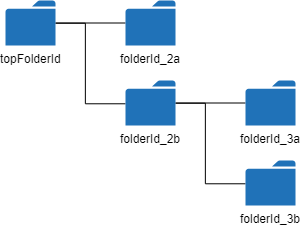 This is a sample script for retrieving a folder tree using Node.js. In this sample, you can set the top of folder for the folder tree. In generally, the folder tree is created by retrieving folders from the top folder in order. For example, when Google Apps Script is used, the script becomes like this. But when Drive API is used for this situation, if there are a lot of folders in the top folder, a lot of APIs are required to be called. So in this sample, I have tried to create the folder tree by a small number of API calls as possible.