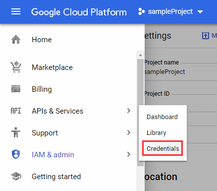 - For the cerated Cloud Platform Project, open the setting page by clicking "Settings" like below.