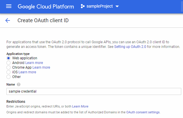 - Select "Web application" and input "Name". Then, click "Create" button.
