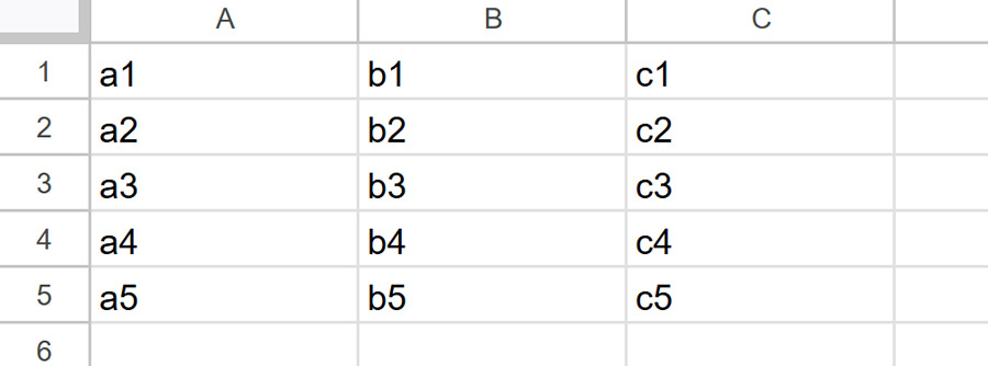 3. Put a value of `[["header1", "header2", "header3"], ["a2", "b2","c2"]]` into the "temp" sheet.