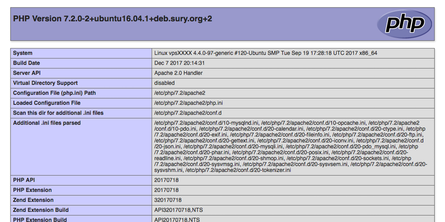 Ouvrez votre navigateur et accédez à http://vpsXXXX.ovh.net/info.php. Si vous voyez la page suivante, PHP est correctement installé !
