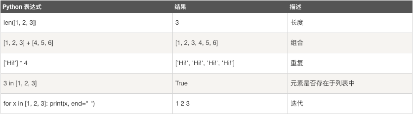 列表对 + 和 * 的操作符与字符串相似。+ 号用于组合列表,* 号用于重复列表。