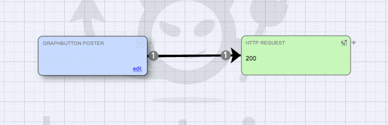 In the Planner tab, click “Add Node” in the upper left and choose “HTTP Request” as the node type. Hover over the block to reveal the settings icon, and in the settings, set the request type to “POST” and paste the action URL. Finally, drag the + connection from the GraphButton block to the HTTP Request block.