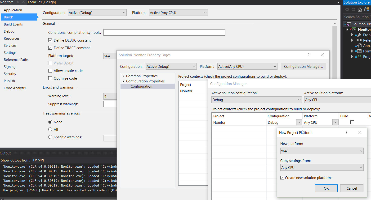 Lets be sure our Target Framework is correct, we have the Visual C++ Redistributable 2015 installed, and we're building explicitly for x86 or x64: