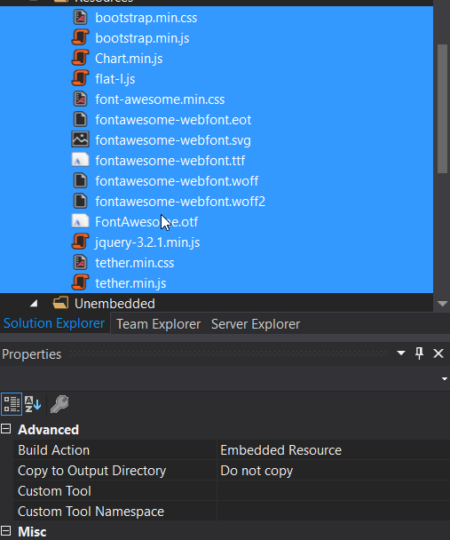 Now copy the needed files to the Resources folder and set the build action to Embedded Resource: