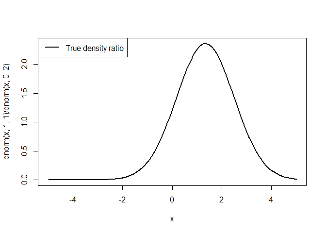 legend("topleft", legend = "True density ratio", lwd = 2)